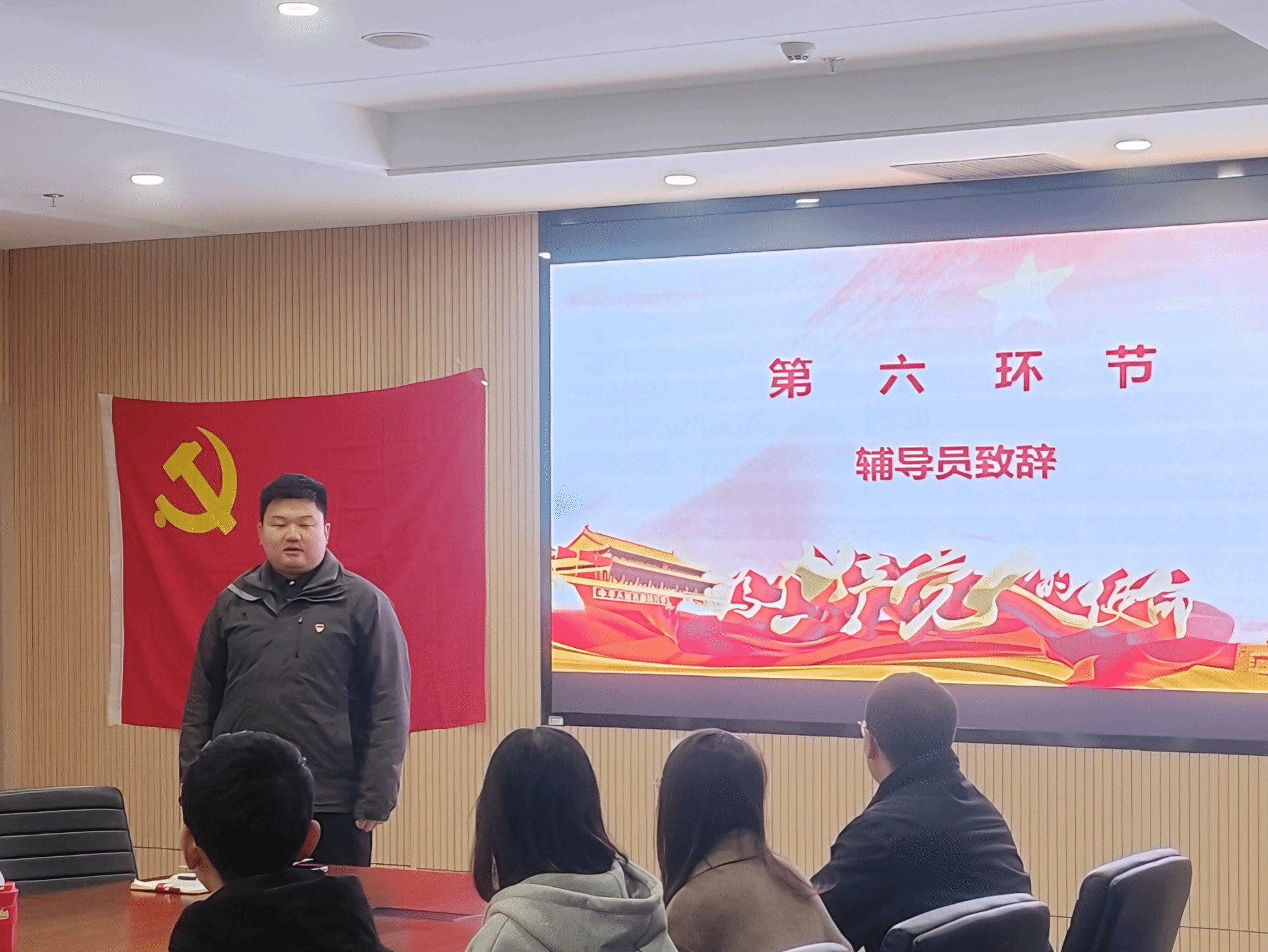 大会在悠扬激昂的《国际歌》中拉开序幕。正式党员代表于洪丽和预备党员代表王思雅分别上台发言。王思雅鼓励在座预备党员积极进行自我监督,比群众多吃苦、多吃亏、多付出,向更加优秀的人学习。接着,陈炳宇宣读新发展的预备党员名单,正式党员为预备党员佩戴党徽。