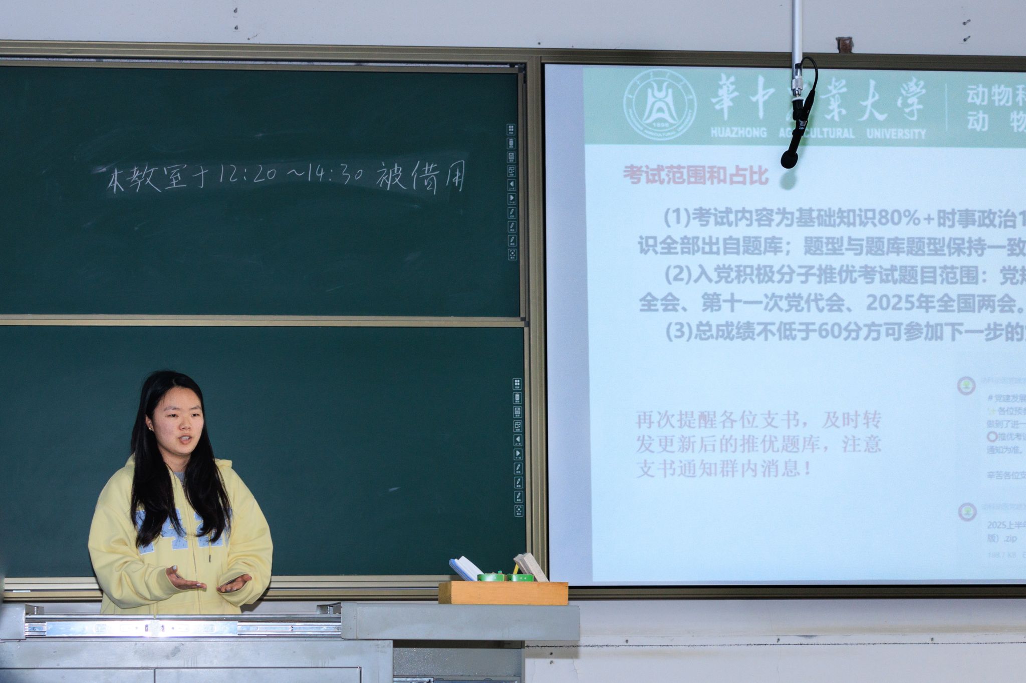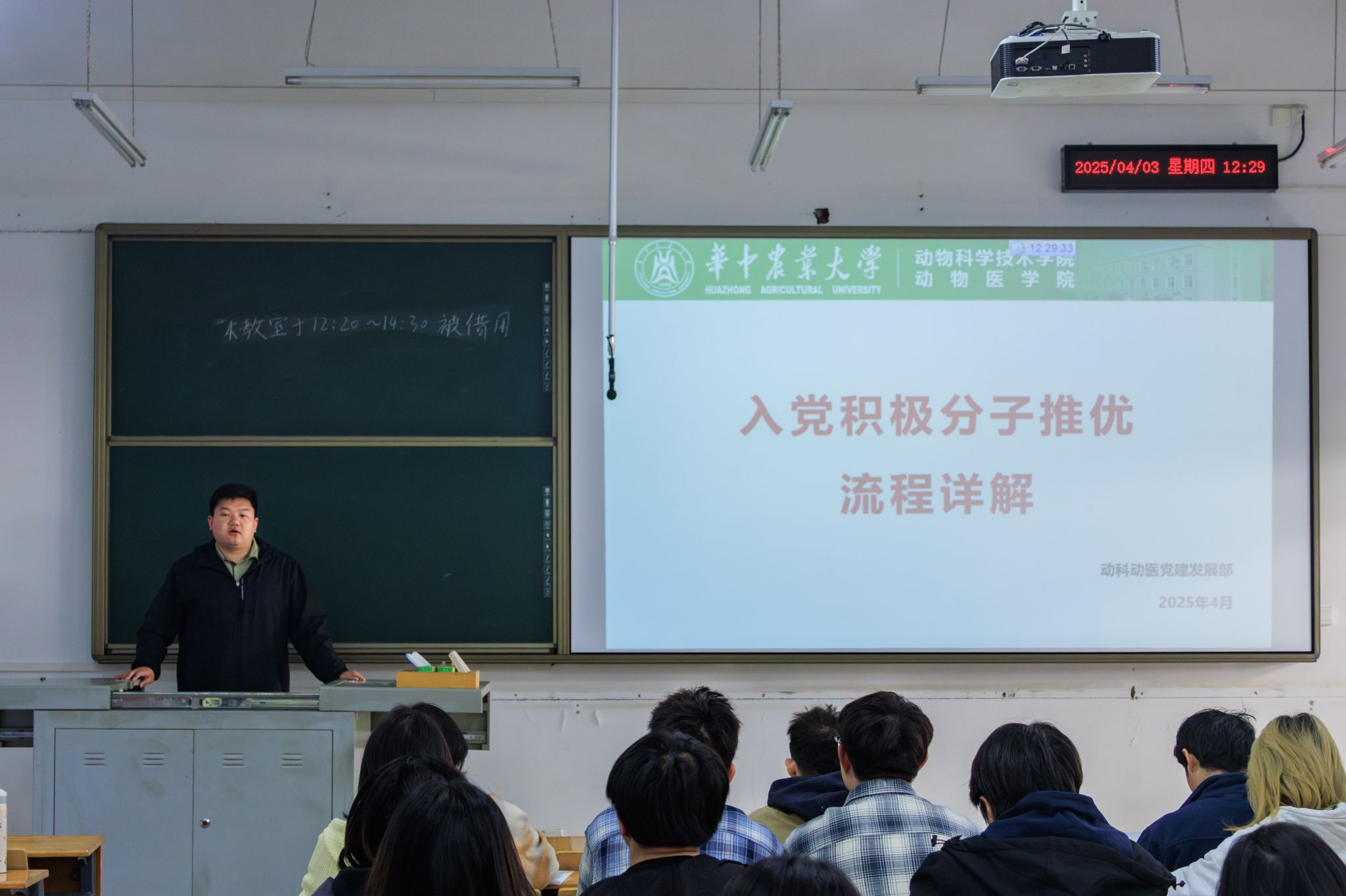 (通讯员:杨婷婷 摄影:江宛如)4月3日中午,动科动医学院2025上半年入党积极分子推优流程讲解会于四教C108举行。学院本科生辅导员程唐煜、各党支部副书记及各班级团支书参会。本次会议由学院党建发展部工作人员李瑞主持。