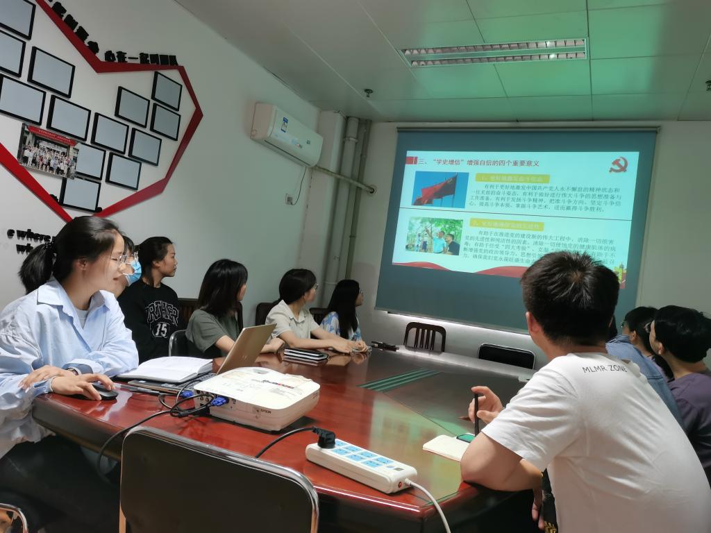 本次活动由宣传委员师曼娜主持,活动分为专题学习和交流分享两部分。会议伊始,师曼娜对党史学习的必要性以及“学史增信”的内涵和意义进行了讲解,并推荐了一些相关学习的重点书籍和篇目。
