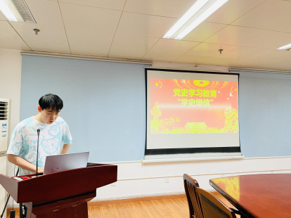 会议伊始,第十五党支部党员胡明阳同志分享了自己关于改革开放时期的党史学习心得。胡明阳同志就改革开放的历史背景,改革开放的重大意义,改革开放的发展阶段,改革开放的伟大成就,基本经验与历史启示等五个方面,为大家进行阐述。