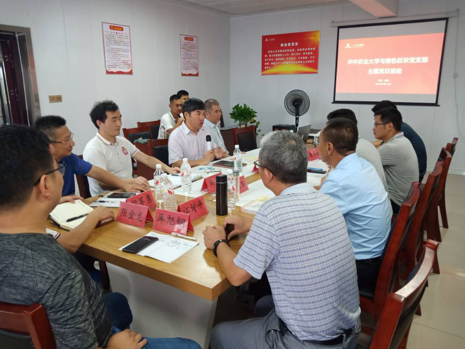 (通讯员 胡思顺 摄影 江云波)7月15日,我院预防兽医学系教工第二党支部与安陆绿色巨农党支部联合开展了“稳步复盘,健康生产”主题党日活动。安陆绿色巨农农牧食品有限公司法人代表李钢猛及相关工作人员、预防兽医学系教工第二党支部、种猪测定中心教工党支部及预防兽医系部分研究生参加了活动。活动由巨农党委书记彭承平同志主持。