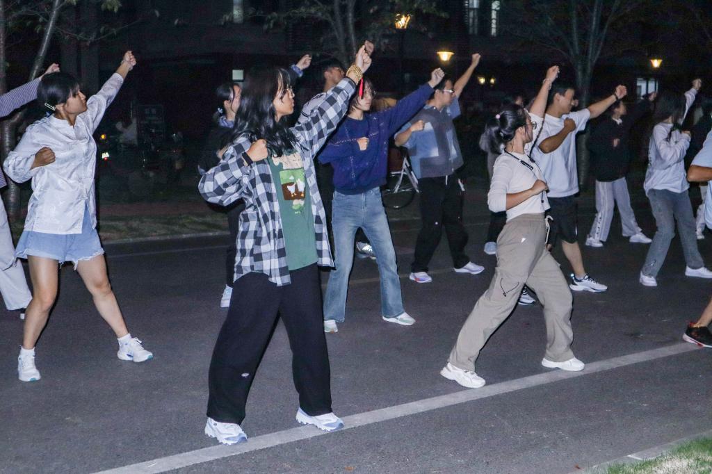 (通讯员:原古新 摄影:陆梦阳)10月19日晚,动科动医学院2023级新生为期十二天的体操培训圆满落幕。本次体操培训分为教学、训练两个阶段,新生在2022级训操员的带领下,以班级为单位于乐乐园旁主干道展开学习。
