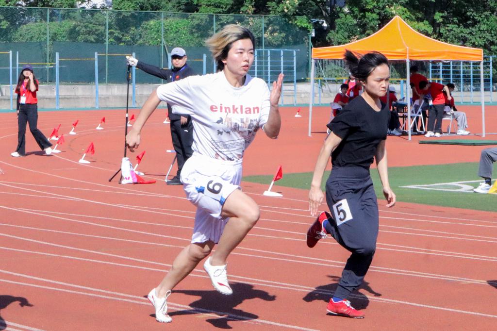 在比赛前的休息区,徐金叶积极为比赛做着准备。她不慌不忙,神色自若。发令枪响后,徐金叶如离弦的箭一样冲过起跑线。观众们的加油声与呐喊声此起彼伏,在热烈的欢呼声中,徐金叶第一个冲过了终点线,为动科动医学院摘下又一枚金牌。