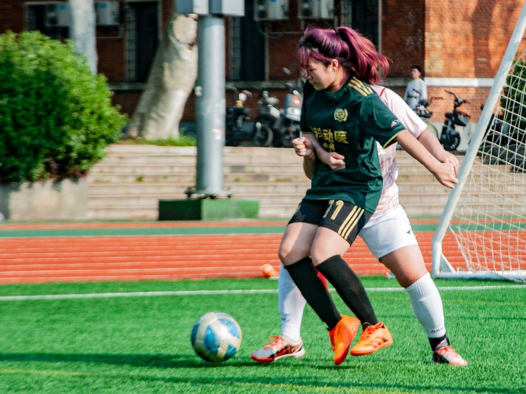 易边再战,4号王明瑶成功突破文法学院队防线,以一记射门,为动科动医学院队取得了1:0的领先优势。文法学院队迅速调整策略,积极组织进攻。动科动医学院队门将吕英琪稳定发挥,接连化解了文法学院队的进攻。终场哨响,动科动医学院以1:0的比分赢得比赛。