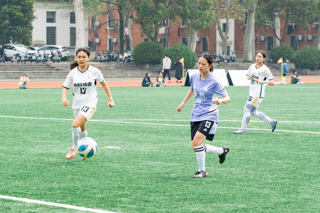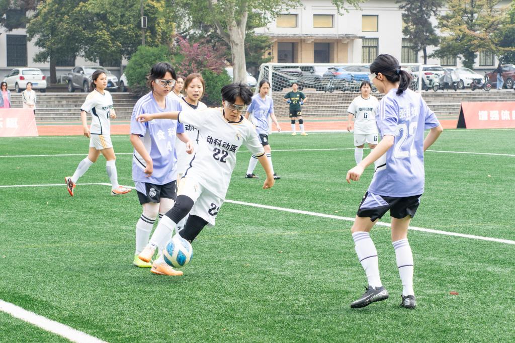 下半场再战,双方队伍毫不松懈。比赛第三十六分钟,动科动医学院队22号车文萱与4号王明瑶的精准配合打破僵局,王明瑶一记远射直接命中目标,拔得头筹。随后,动科动医学院队5号李辰垚巧妙利用胸部停球技术,创造射门良机,食科学院队守门员凭借敏锐的判断,化解了这次危机。比赛后程,动科动医学院队4号王明瑶以一记吊射,将比分锁定在2:0。