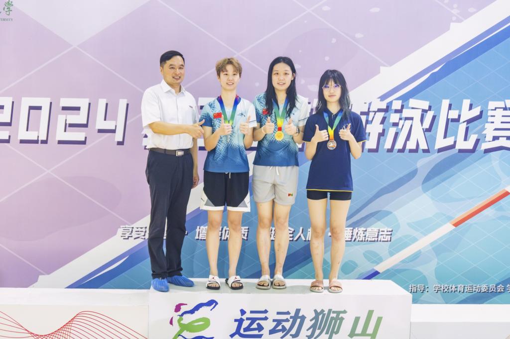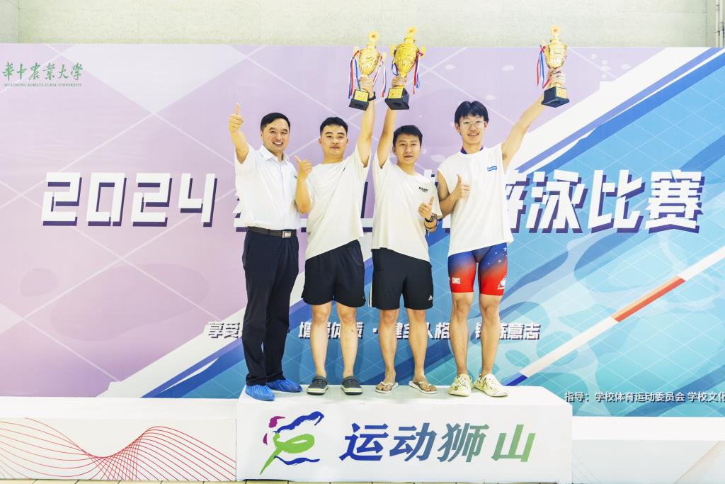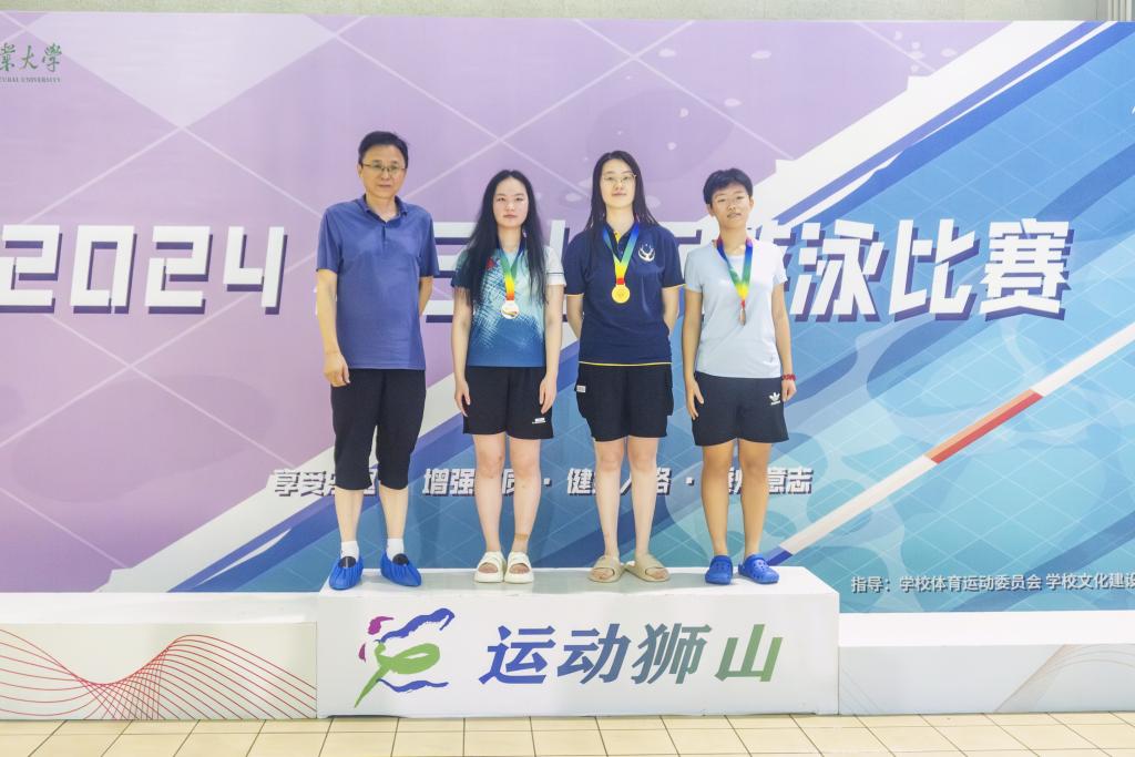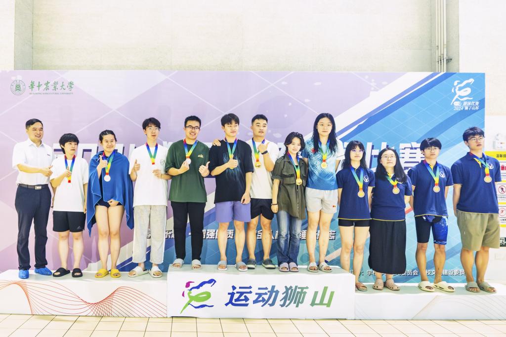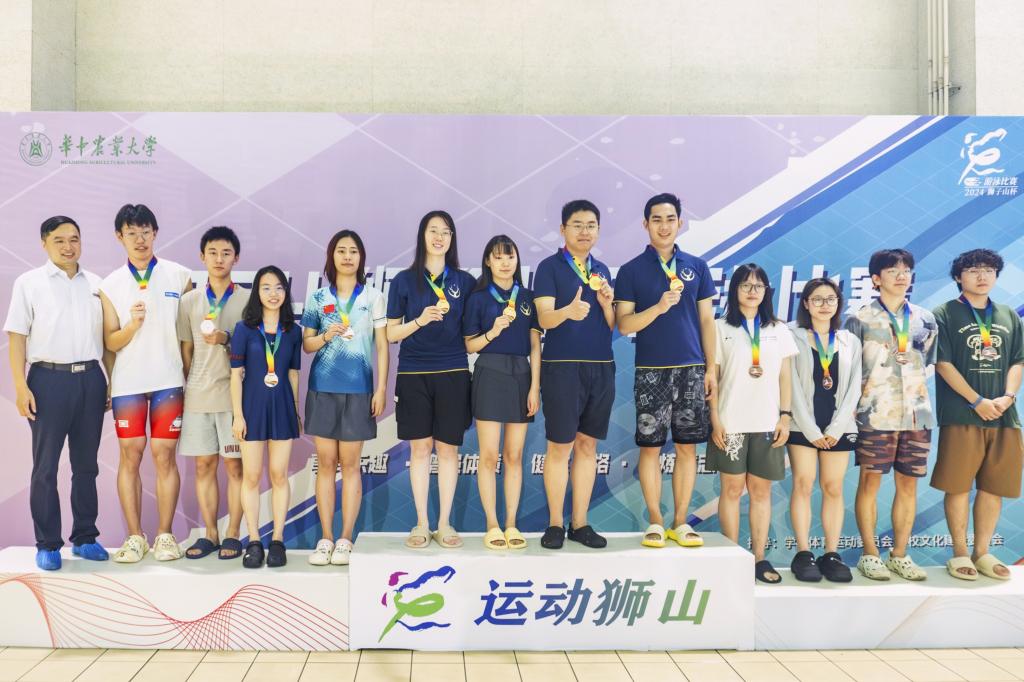 泳池清冽映长空,泳者如鱼破浪行。一声令下,游泳运动员们蹬壁如箭,急速前行,如飞鱼般快速穿越泳道,在水中劈波斩浪,每一次划水都无畏的竞技精神和对胜利的渴望。在紧张的比赛氛围中,运动员们敢于拼搏、永不放弃,向观众展现了“动科动医、永创第一”的风采。此外,师生共同参与的混合接力赛也传达了集体荣誉感与团结互助的精神,师生相互鼓励、相互支持,在每一个重要的交接环节和冲刺中,都彰显出团队的力量和凝聚力。