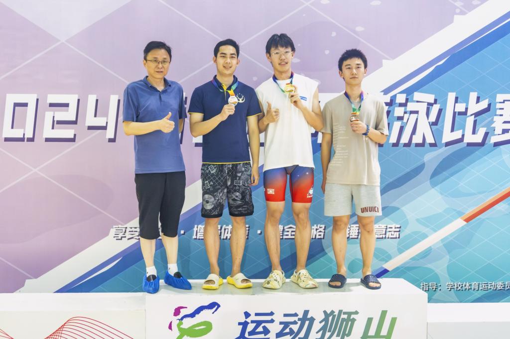 男子50米仰泳 程龔 第一名;贾宇天 第三名;黄吉相 第五名