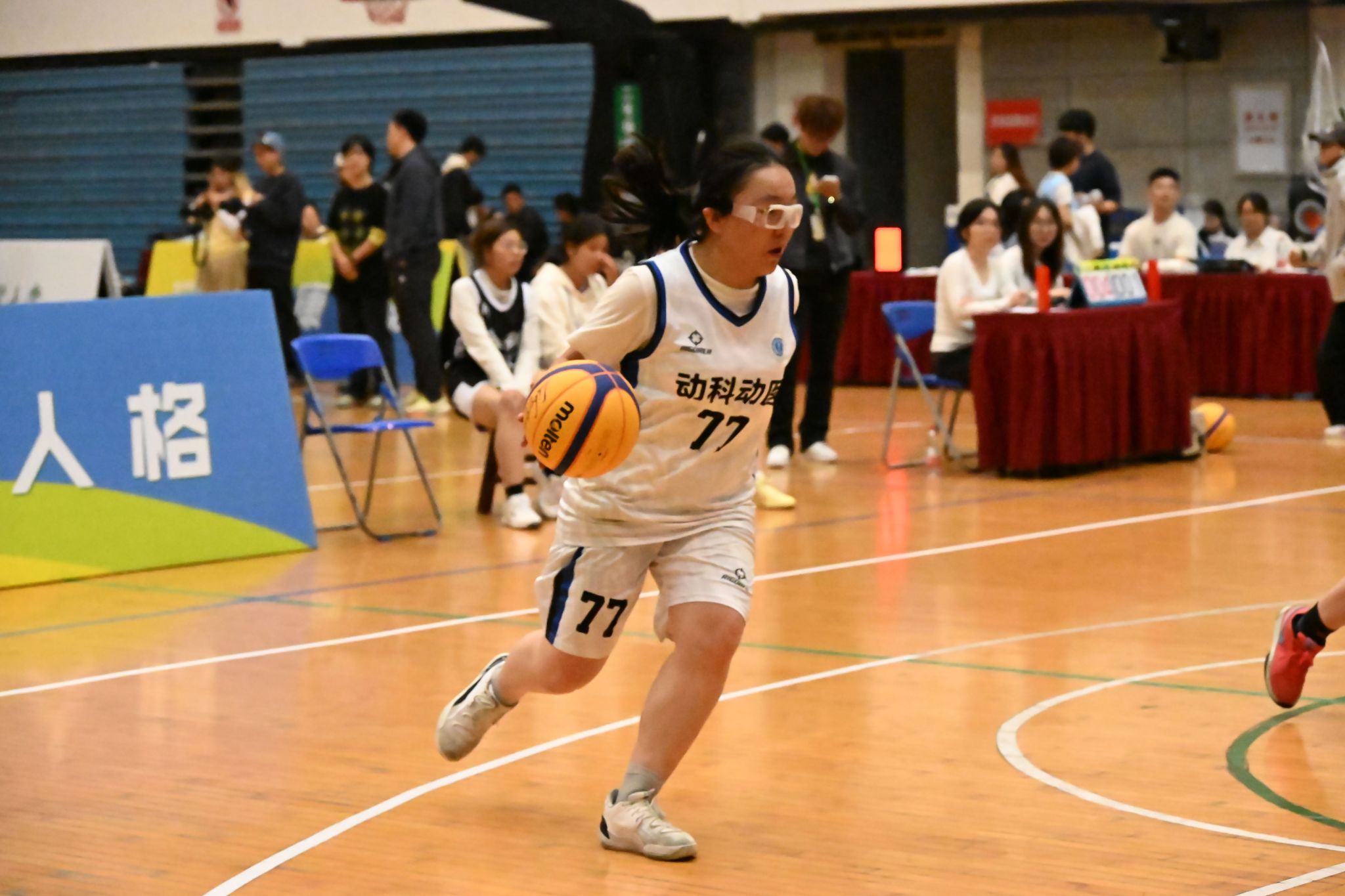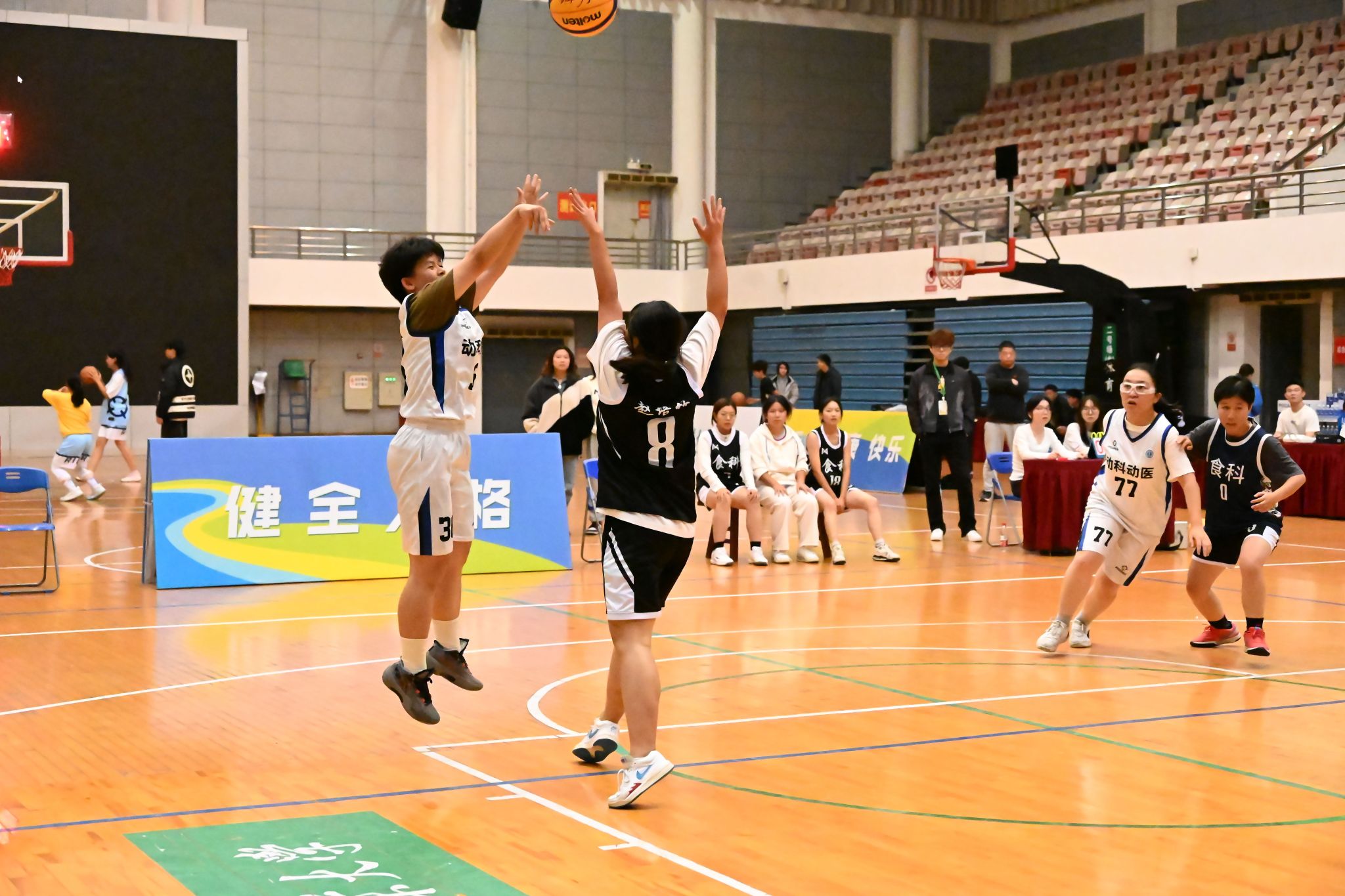 比赛进程过半,动科动医学院女篮依旧牢牢掌控赛场主动权,保持比分领先优势。关键时刻,36号球员汪涵展现出极强的心理素质——在一次罚篮未能命中后,她迅速调整状态,凭借敏锐的赛场判断力完成自投自抢篮板,在外围果断出手,稳稳命中1分,为球队进一步扩大优势。紧接着,77号球员阿丽娜尔巧妙运用牵制战术为队友创造进攻空间,成功协助汪涵完成三步上篮,再添1分。