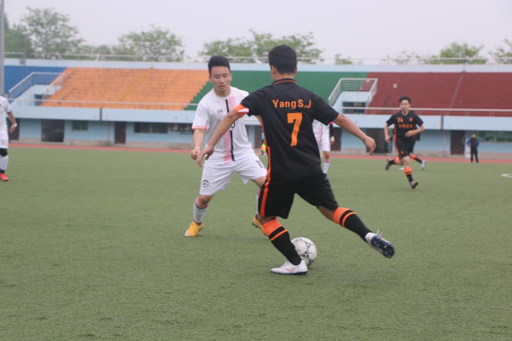 动科动医学院21号蔡怀远与园艺林学学院22号王洵在激烈拼抢球权(通讯员 郭睿阳 摄)