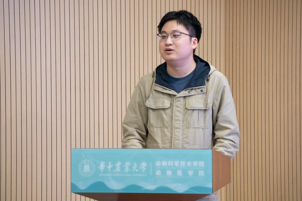 “胸怀祖国、服务人民”的爱国精神,“勇攀高峰、敢为人先”的创新精神,“追求真理、严谨治学”的求实精神,“淡泊名利、潜心研究”的奉献精神,“集智攻关、团结协作”的协同精神,“甘为人梯、奖掖后学”的育人精神,这四十八字构成了“科学家精神”的主要内涵。言简意丰,背后是一代代人穷尽一生去书写的精神力量。郭子鸣接着讲述了陈华癸、陈焕春、傅廷栋等多位院士的科研故事,通过真人真事让学生们感受在科学实践中打磨科研成果的不易与坚持。一代代科学家将经历凝练成为精神,最终成为我国科学界宝贵的财富。
